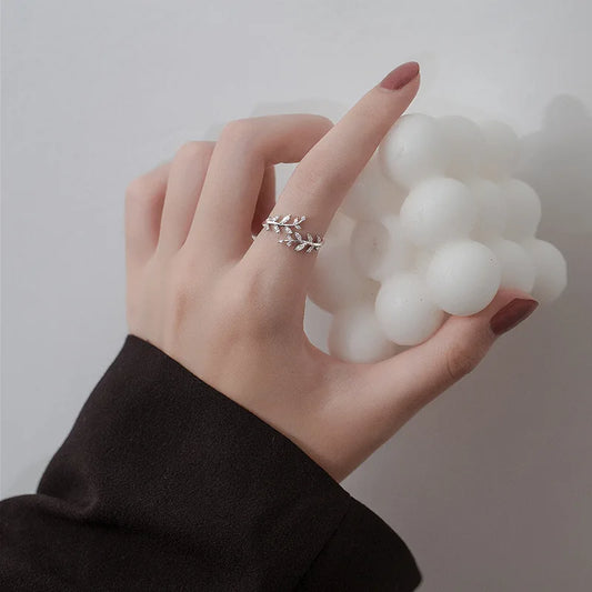 Anel Raminho Cravejado Ajustável- Prata 925