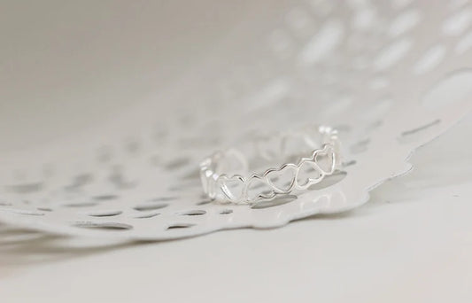Anel coração vazado ajustável - Prata 925
